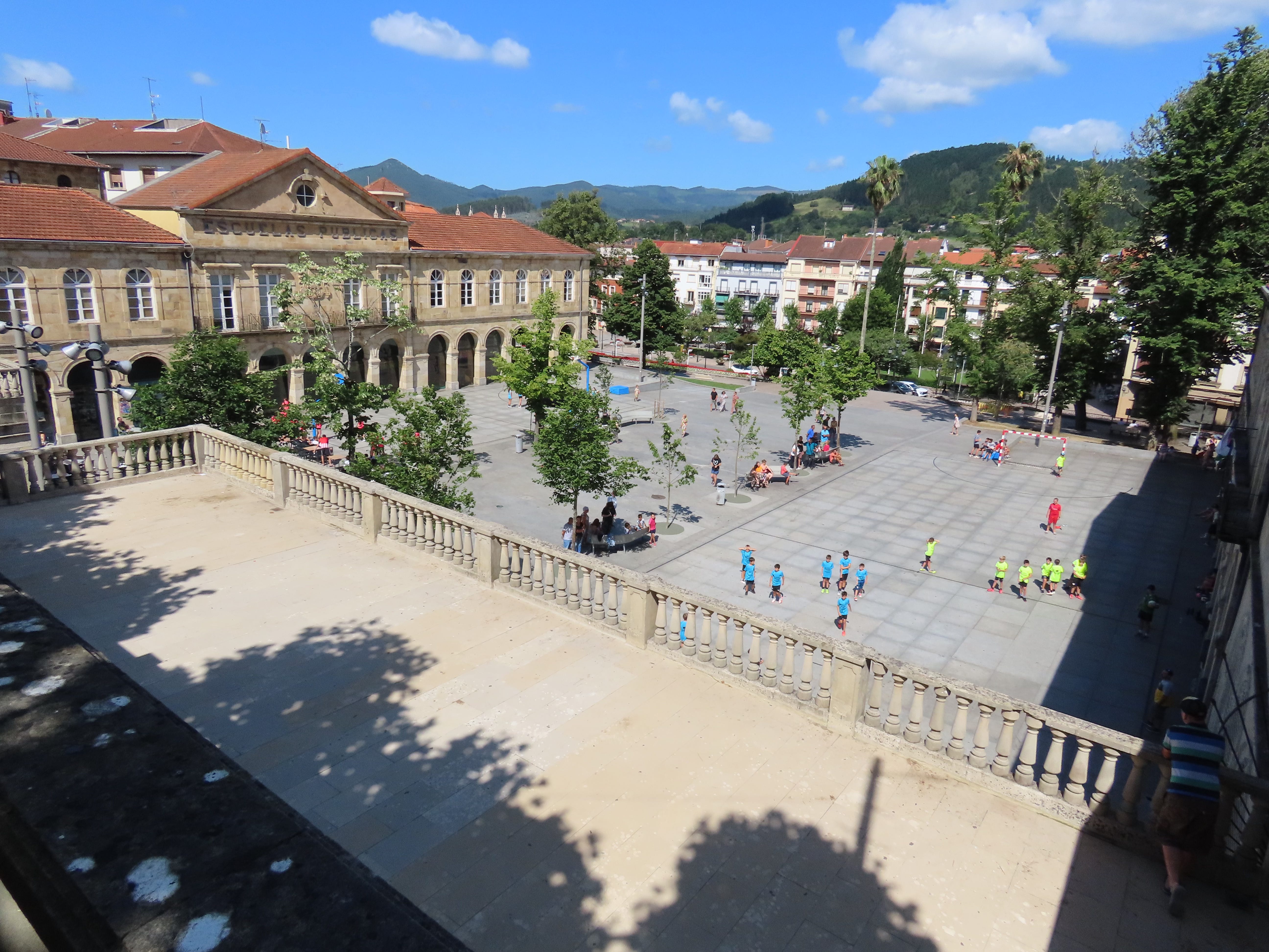 Parents watch their children practice soccer on the leafy town square, ringed by red-roofed buildings and the hills of the Basque country. Nearby is the assembly house, next to the oak tree around which regional leaders have taken their oaths of office for more than six hundred years.